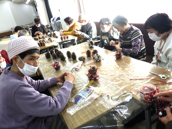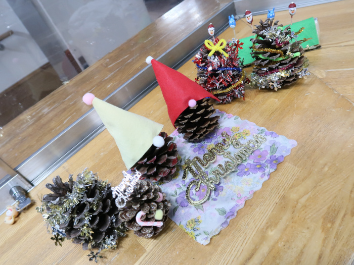 クリスマス飾り 投稿日 2025年12月26日 著者 azeriyakai カテゴリー イベント クリスマスの飾りつけをみんなで作り飾りました。頂いた松ぼっくりやドングリを使って小さな小さなサンタやトトロなど…館内がかわいい手作りの飾りで彩られています。お昼にはクリスマス食を美味しく頂きました。